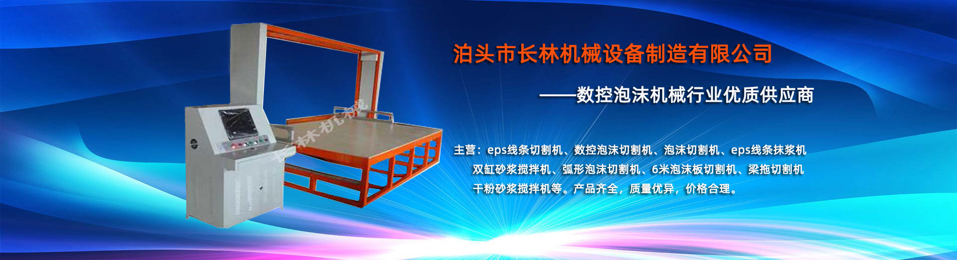 泊頭市長(zhǎng)林機(jī)械設(shè)備制造有限公司座落于河北省泊頭市開發(fā)(fā)區(qū)(qū),地處北京、天津、濟(jì)南、石家莊中心位置。京滬高速、京滬鐵路、106國道、104國道穿行于本市,交通便利。 本公司是集多功能數(shù)(shù)控泡沫切割機(jī)的自主研發(fā)(fā)、生產(chǎn)、銷售和服務(wù)于一體的企業(yè)(yè),eps線條設(shè)備,數(shù)(shù)控泡沫切割機(jī),發(fā)(fā)泡陶瓷切割機(jī),eps線條切割機(jī)銷往全國各地,并開辟了國際合作的廣闊渠道。創(chuàng)(chuàng)新不斷的長(zhǎng)林?jǐn)?shù)控機(jī)械有限公司經(jīng)(jīng)過幾年的不斷研究,完善了建筑裝飾構(gòu)件的配套設(shè)備和自動(dòng)化設(shè)備,由過去手工生產(chǎn)到半自動(dòng)生產(chǎn)發(fā)(fā)展到現(xiàn)(xiàn)在的CNC控制的全自動(dòng)零誤差數(shù)(shù)控泡沫切割機(jī)床。不但讓客戶在交貨期上面爭(zhēng)取了時(shí)間而且···
